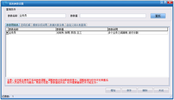 解決辦法:在【系統設置中心】中的【系統設置參數設置】中的【業務員】的參數值后加上新的姓名,用分號隔開