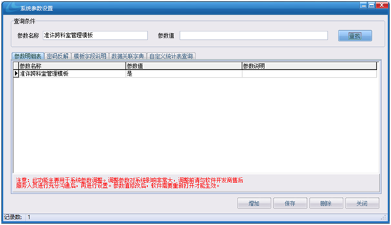 的參數值設置為是,即可跨科室管理模板